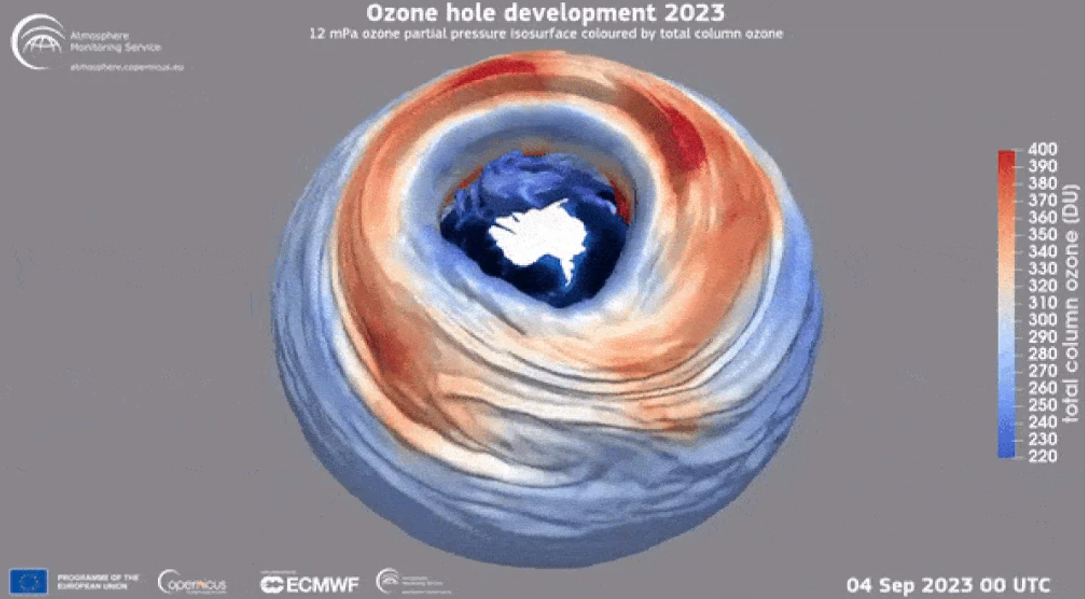 Theo thông tin mới nhất, lỗ thủng tầng ozone năm 2023 có kích thước trung bình trong 20 năm qua, thậm chí nhỏ hơn một chút so với năm ngoái.