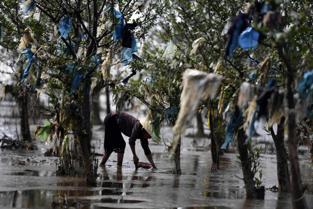 Một phần rừng ngập mặn tại Việt Nam vướng nhiều rác nhựa, năm 2018. Ảnh: AFP