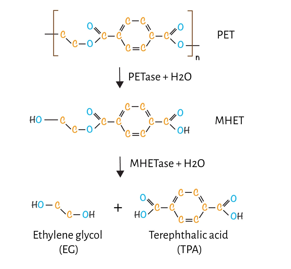 Tháng 4/2020, nhóm các nhà nghiên cứu từ Đại học Toulouse và Carbios - công ty công nghệ sinh học của Pháp - đã tìm ra một loại enzyme có thể phân hủy tới 90% chai nhựa PET chỉ trong 10 giờ. Theo đó, chỉ cần khuấy trong dung dịch chứa enzyme, một chai nhựa sau vài giờ biến thành các tiền chất nhựa mới, mở ra một phương thức tái chế nhựa dựa vào vi khuẩn.